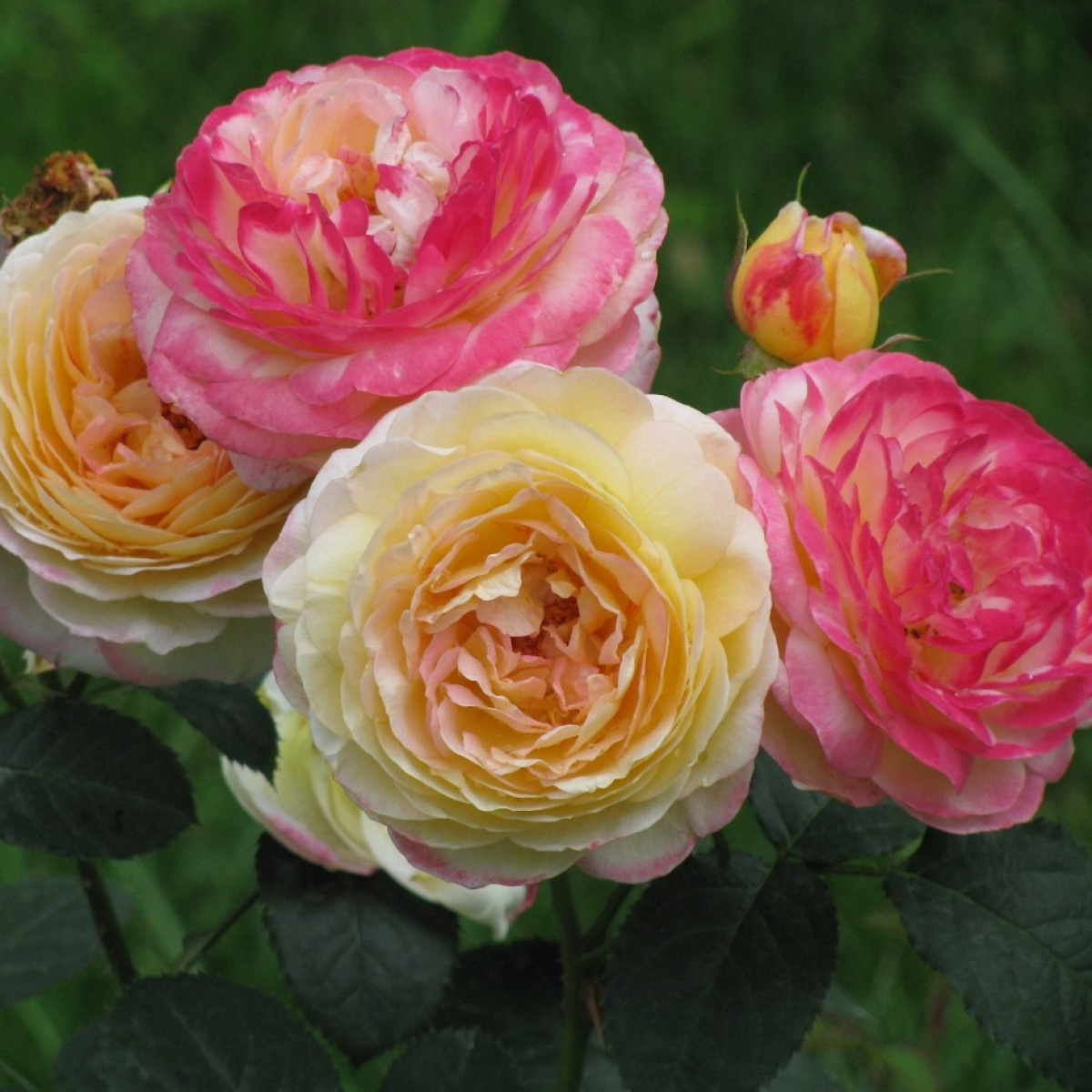 Цветки махровые, чашевидные, светло- желтые с зеленым оттенком, затем розовеют. Ароматная. Повторноцветущая.