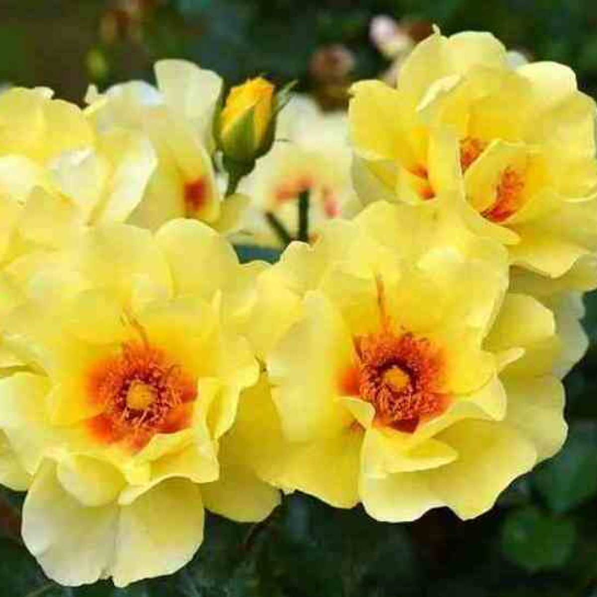Высота: 70-90 см. Цветок золотисто-жёлтый с красно-коричневым центром. Аромат легкий. Персидский гибрид. Повторноцветущая