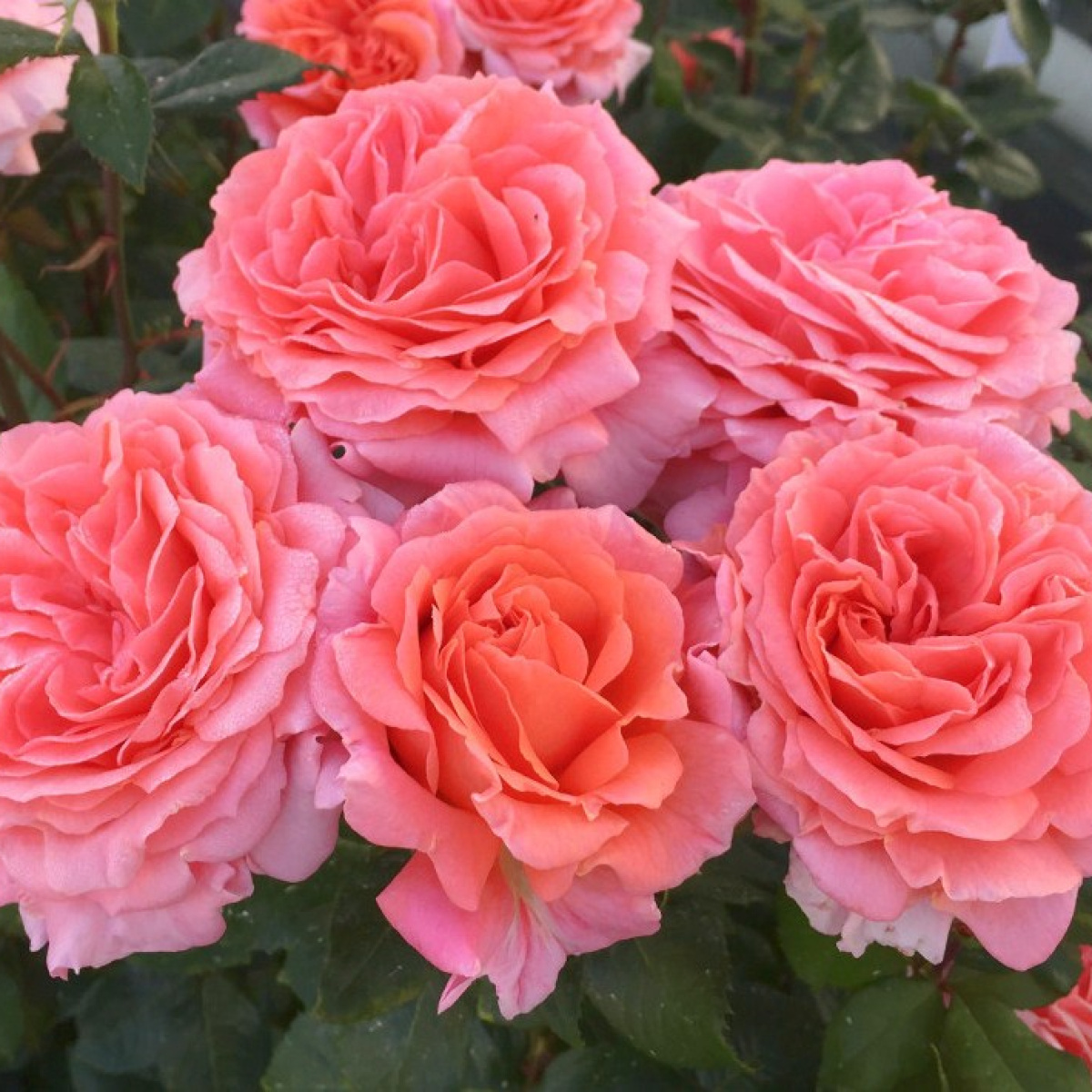 Высота: 100-120 см. Цветки махровые, чашевидные с волнистыми краями, лососево-розового окраса. Ароматная. Чайно-гибридная роза. Повторноцветущая