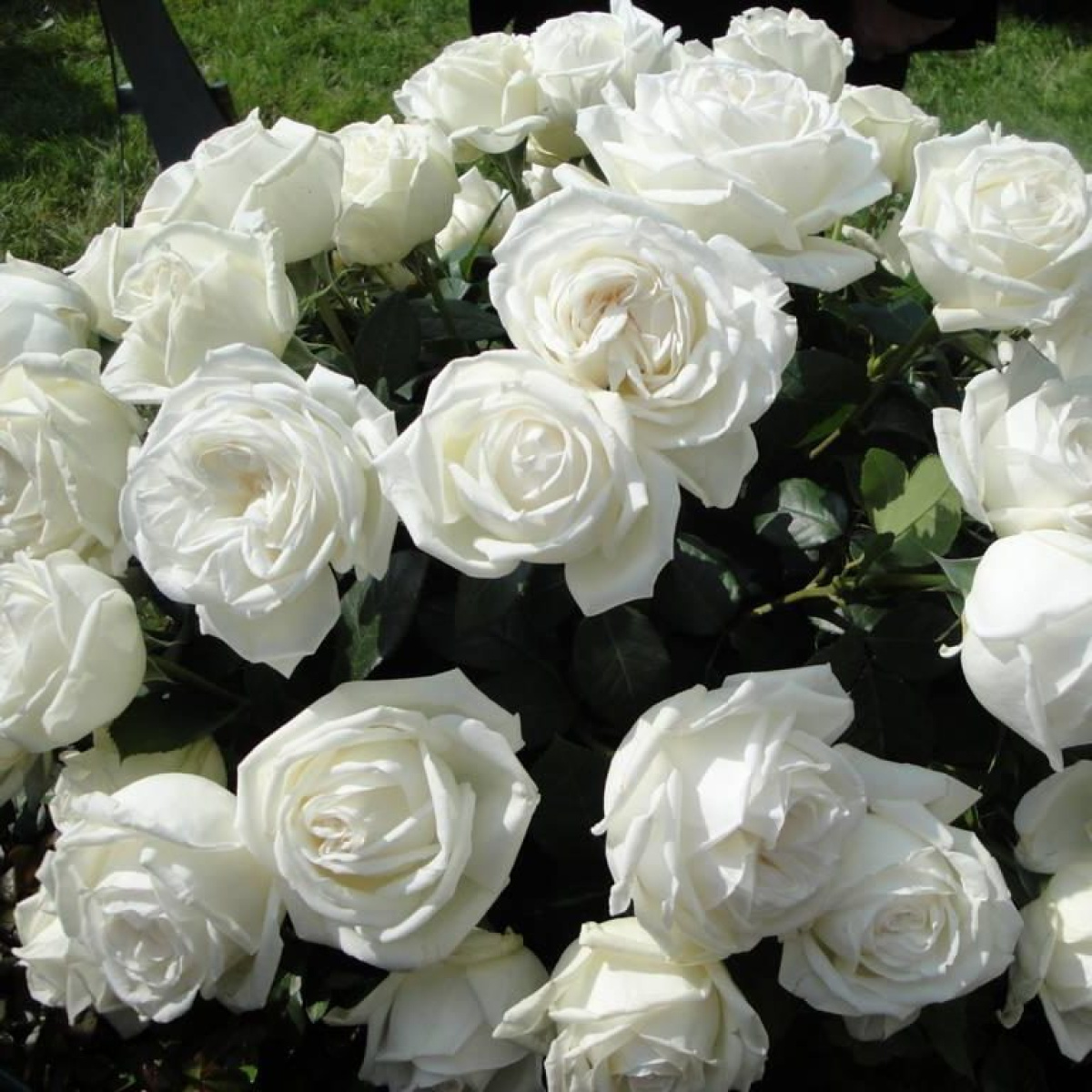 Высота: 100-120 см.Цветки крупные, махровые, чисто-белые. Ароматная. Чайно-гибридная роза.Непрерывноцветущая.
