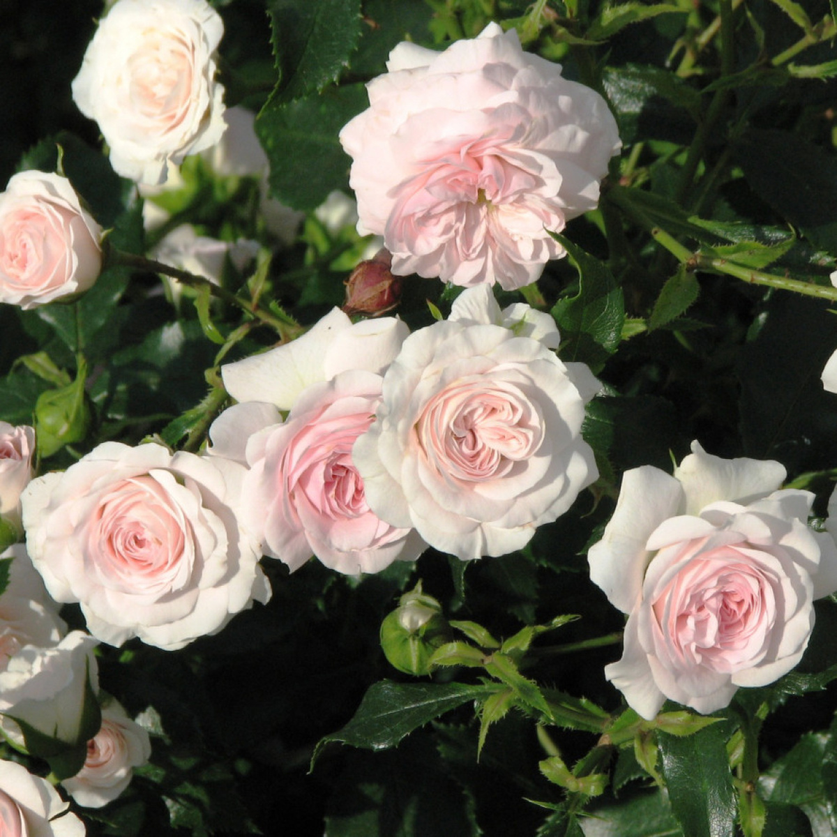 Высота 70-80см. Цветки густомахровые, нежно-розовые. Аромат легкий. Шрабы. Повторноцветущая