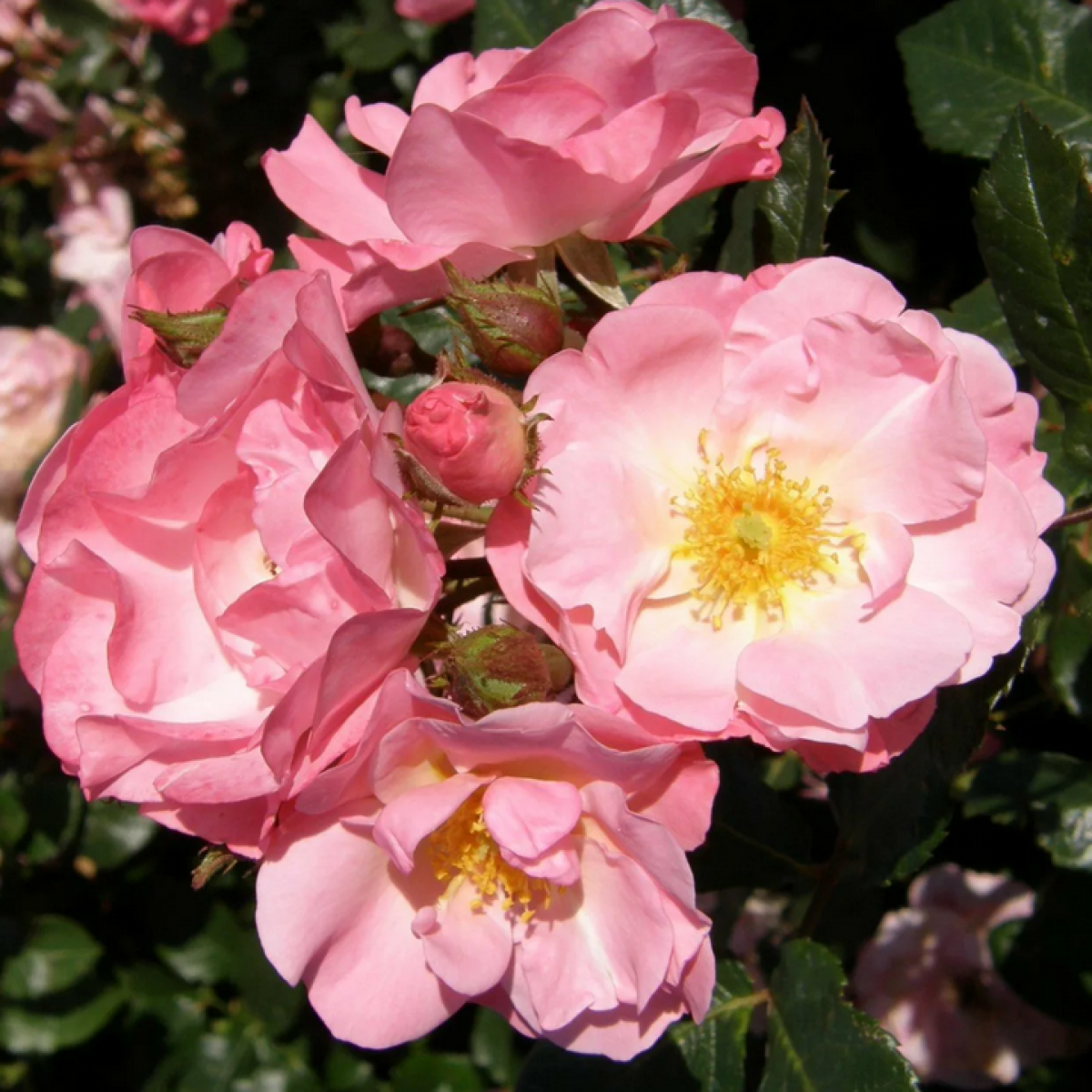 Высота 100-120 см.Нежно-розовые, полумахровые цветы, с более светлым центром.Аромат легкий. Флорибунда. Непрерывноцветущая.