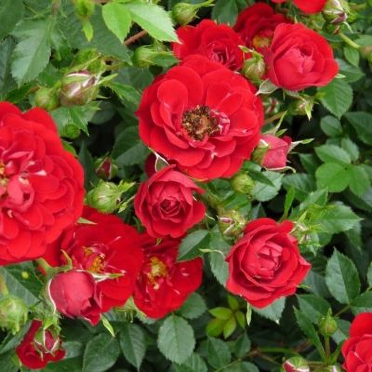 НОВИНКА!!! Высота: 40-60 см. Цветки махровые, красные, с темно-розовым отливом. Аромат легкий. Почвопокровная роза Повторноцветущая.