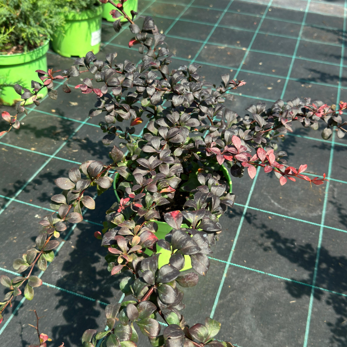 Кустарник до 0,8-1м с шаровидной кроной диаметром до 1,5м. Листья мелкие, темно-пурпурные, осенью красные. Солнце, полутень.
