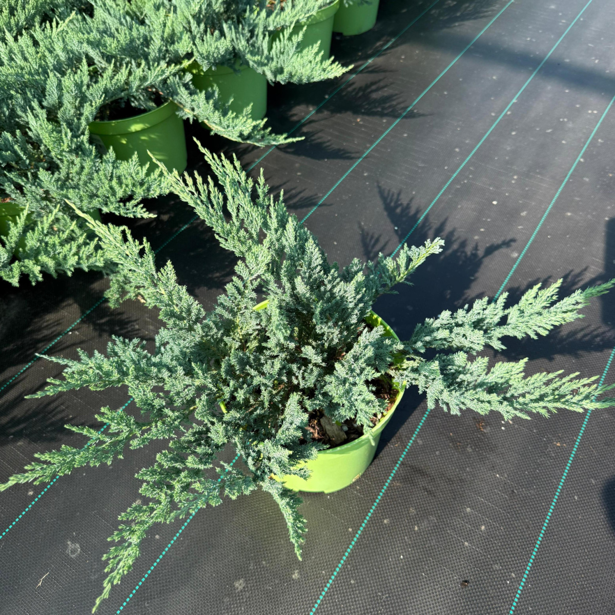 Стелющийся кустарник, характеризующаяся средней скоростью роста. Достигает в возрасте 10лет 0,2м высотой при диаметре 1,5-2м. Побеги ползучие по земле. Хвоя мелкая, серебристо-голубого цвета (зимой фиолетовая). Требования к почве и влаге невысокие. Рекомендуется для каменистых садов, а также в виде почвопокровного растения. Один из самых красивых почвопокровных сортов! Солнце.