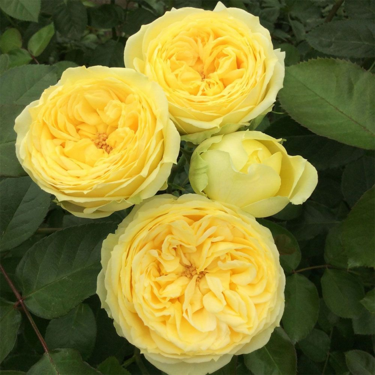 Цветки чашевидные, махровые, желто-лимонные. Аромат легкий. Спрей роза. Непрерывноцветущая.