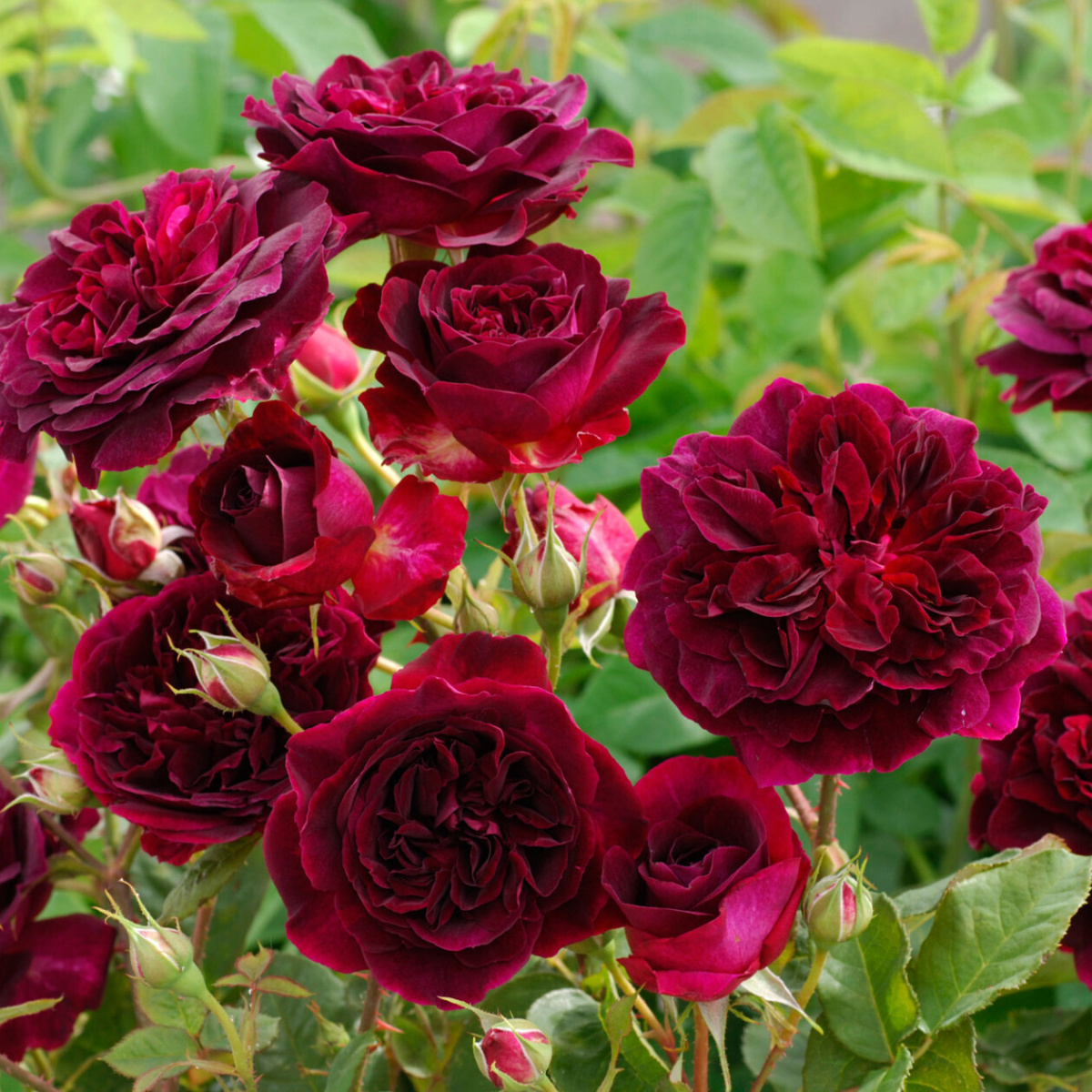 Высота: 80-100см. Цветки крупные, чашеобразные, темные, бархатисто-бордовые. Ароматная. Солнце, полутень. Роза Остина. Повторноцветущая