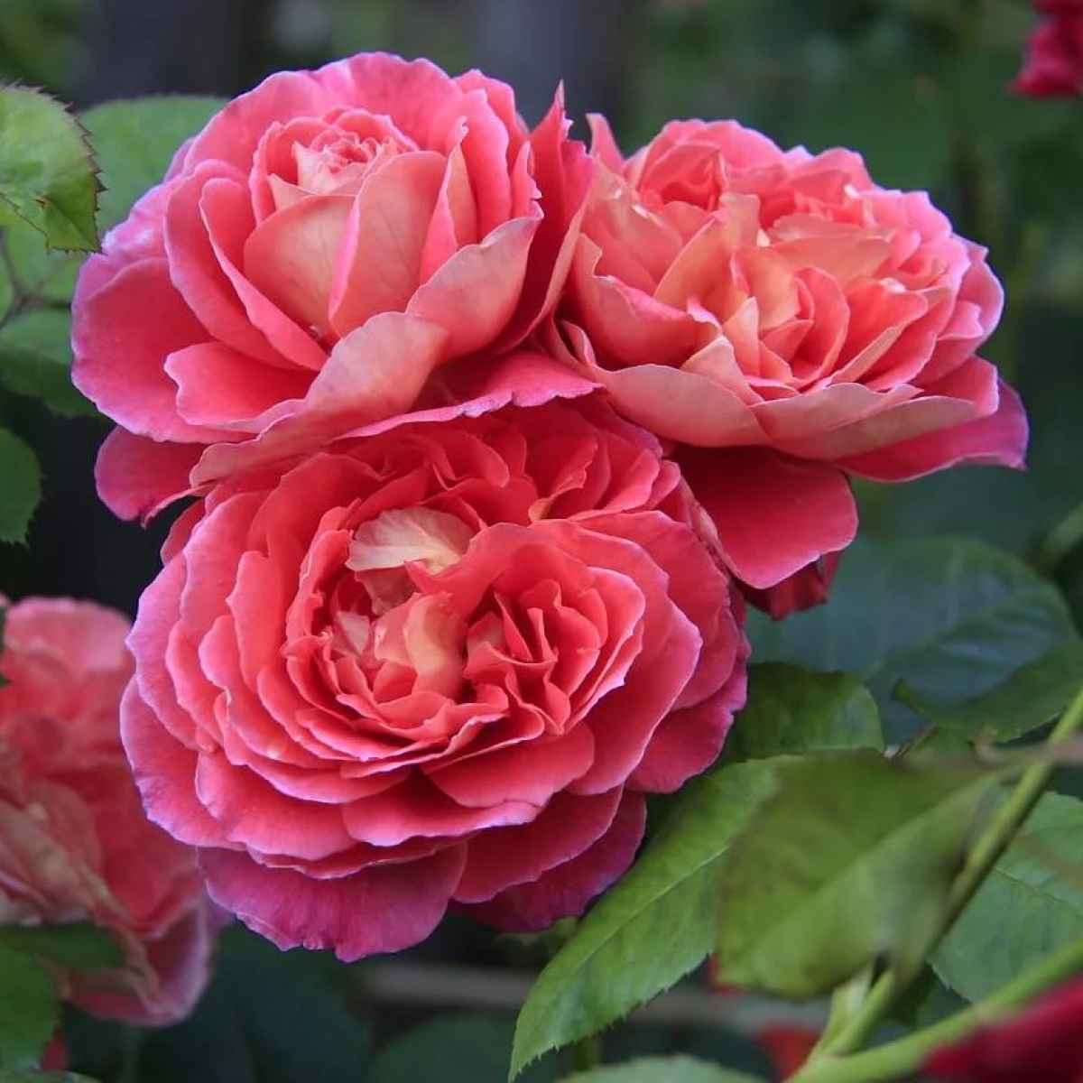 Высота: 100см. Цветки махровые, чашевидные, вишнево-красные с золотисто-желтой оборотной стороной. Ароматная. Шрабы. Повторноцветущая.