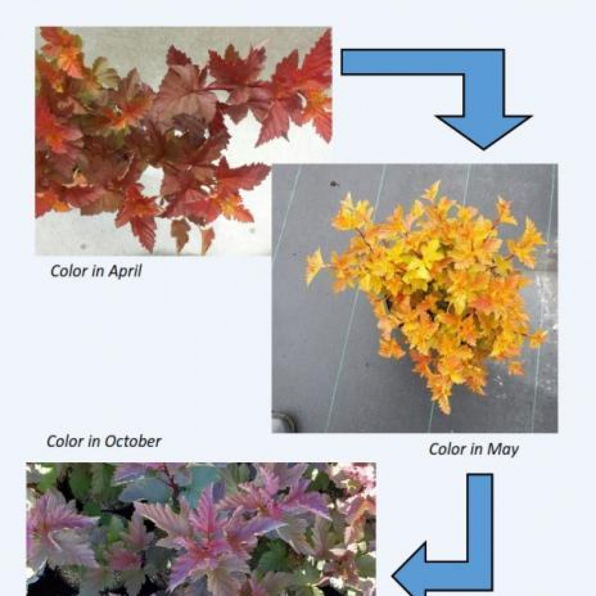 Высота и ширина до 1,2м. Побеги ярко-оранжевые. Листья оранжево-желтые, осенью становятся красными. Цветки белые. Солнце, полутень.