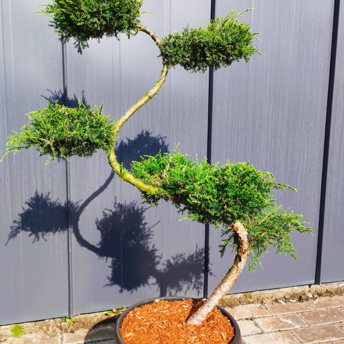 В японских садах деревьям придают определенную форму, регулярно их подстригают. Сформированные бонсаи требуют 1-2 поддерживающих форму стрижки в год. Бонсай из можжевельника среднего Wilhelm Pfitzer. Побеги извилистые, вертикальные. Солнце.