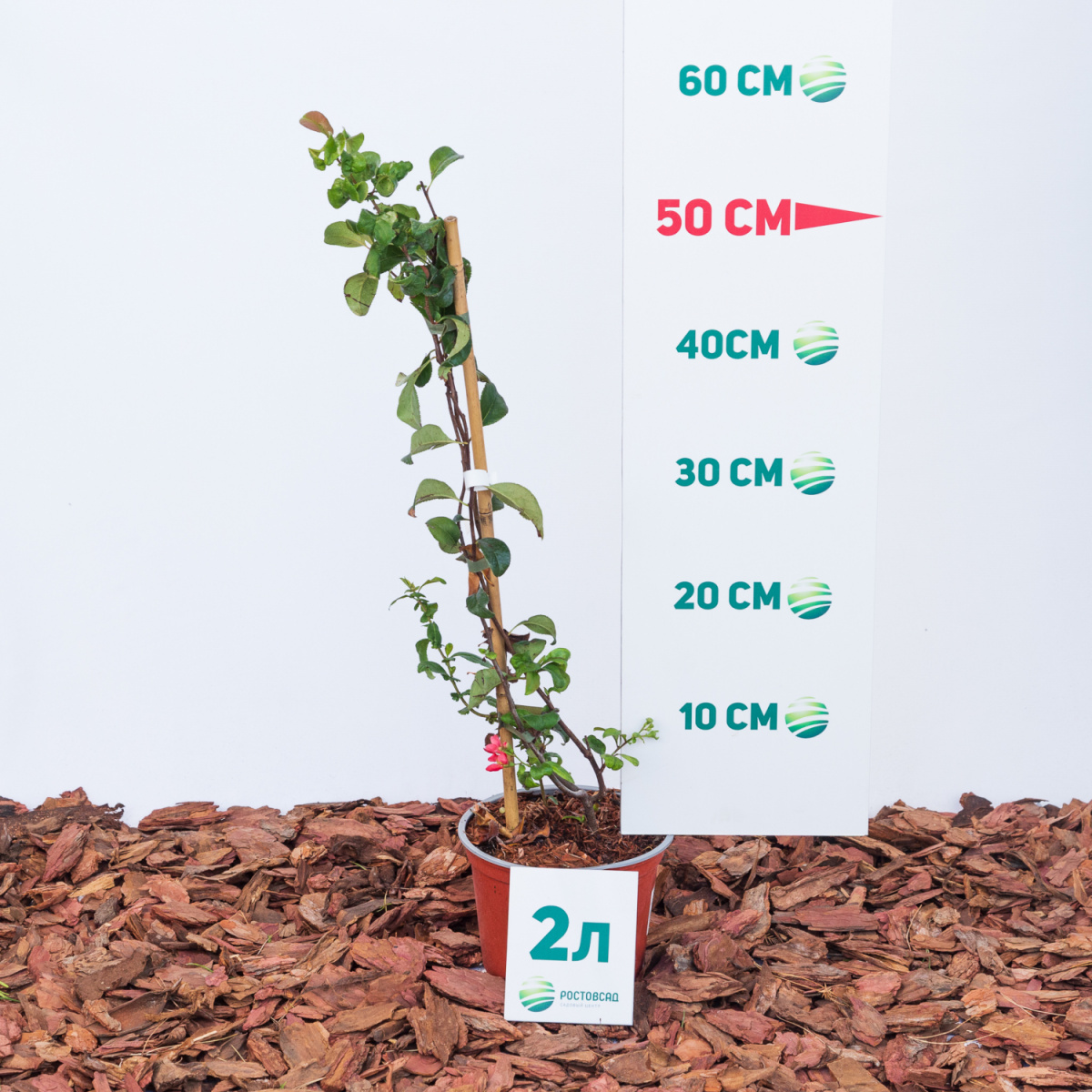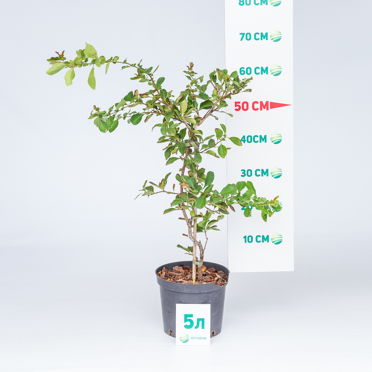 Кустарник высотой и диаметром до 1,2м. Форма кроны кустовая. Цветки розовые, крупные. Плоды небольшие, зеленые, созревшие ярко-желтые. Солнце, полутень.