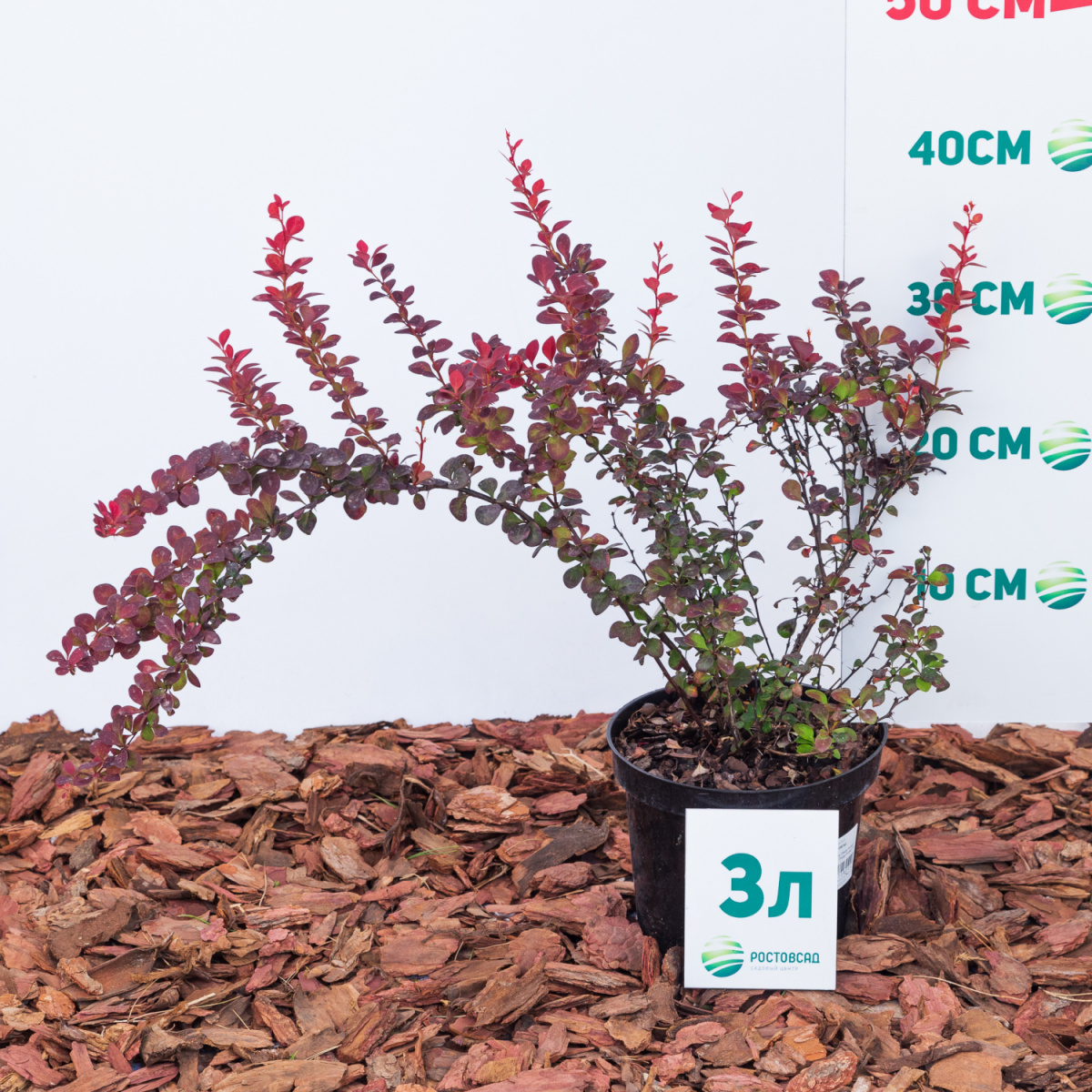 Колоновидный сорт барбариса до 1,2м и диаметром до 0,6м. Листья яркие красно-оранжевые. Солнце, полутень.
