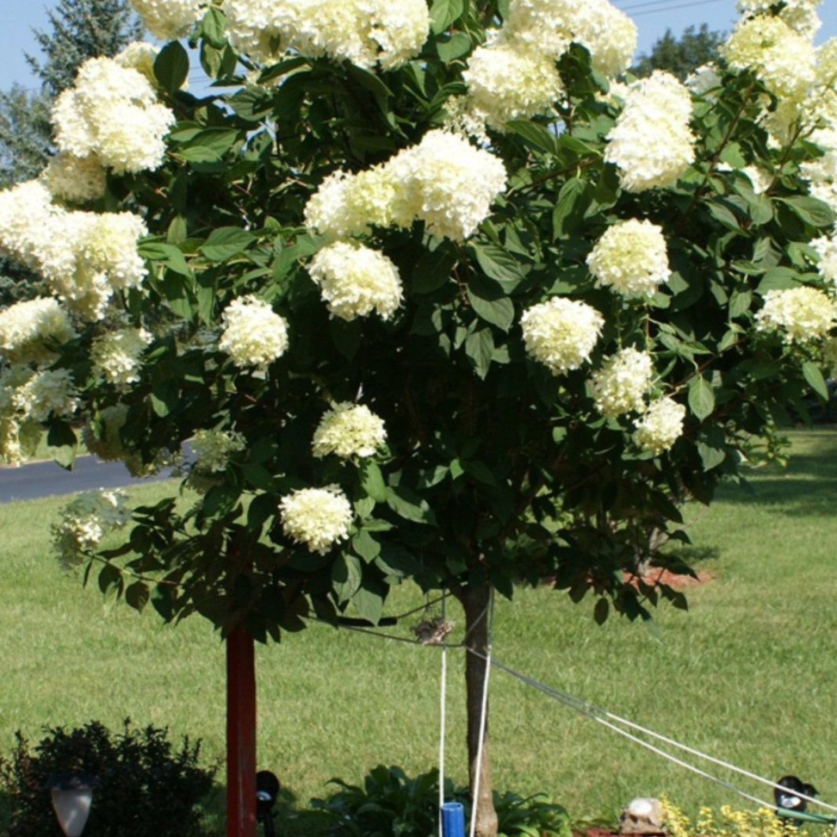 Декоративно-цветущий кустарник высотой и диаметром до 1,5-1,8м. Крона округлая. Цветение июль-сентябрь. Цветы крупные, салатового цвета, затем становятся белыми. Тень, полутень