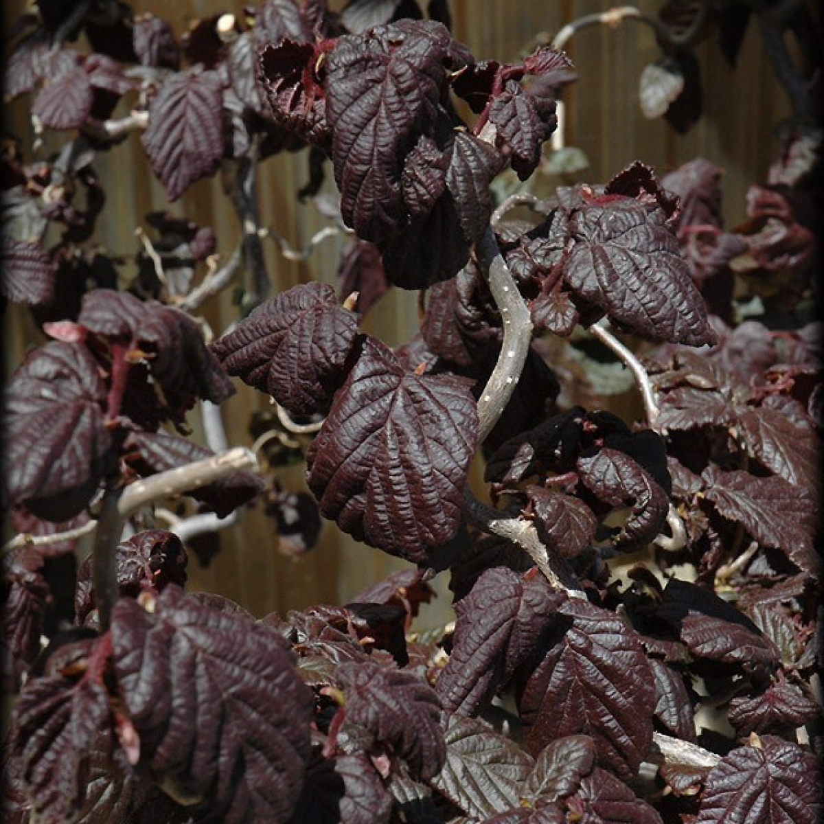 Сильно скрученные побеги и темно-красные листья.