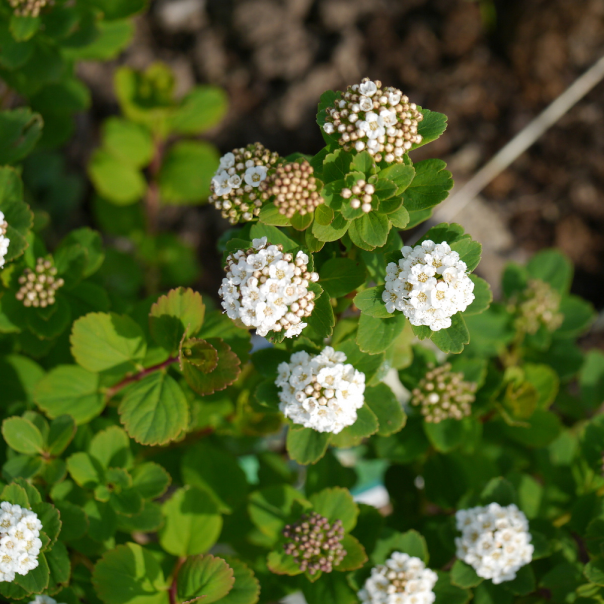Карликовый сорт до 1м в диаметре. Крона компактная, шаровидная. Цветет с июня до августа бело-кремовыми цветками.Солнце.