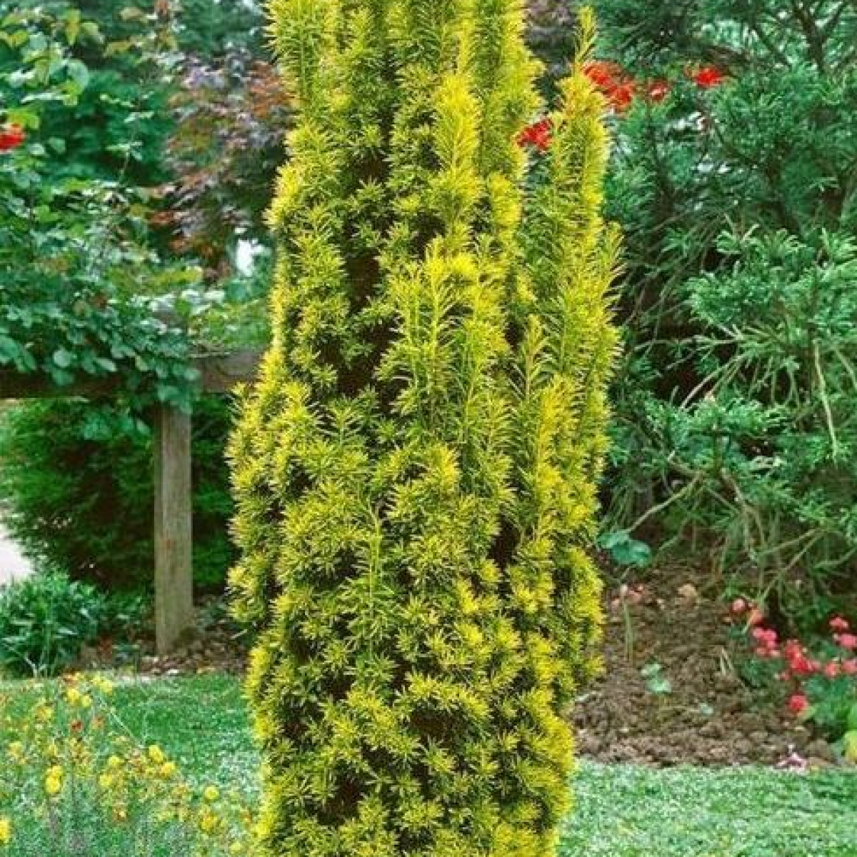 Высота 2-2,5 м, с диаметром кроны до 60-80 см. Крона узкая, колонновидная. Хвоя зеленая с желтой каймой. Полутень, тень.