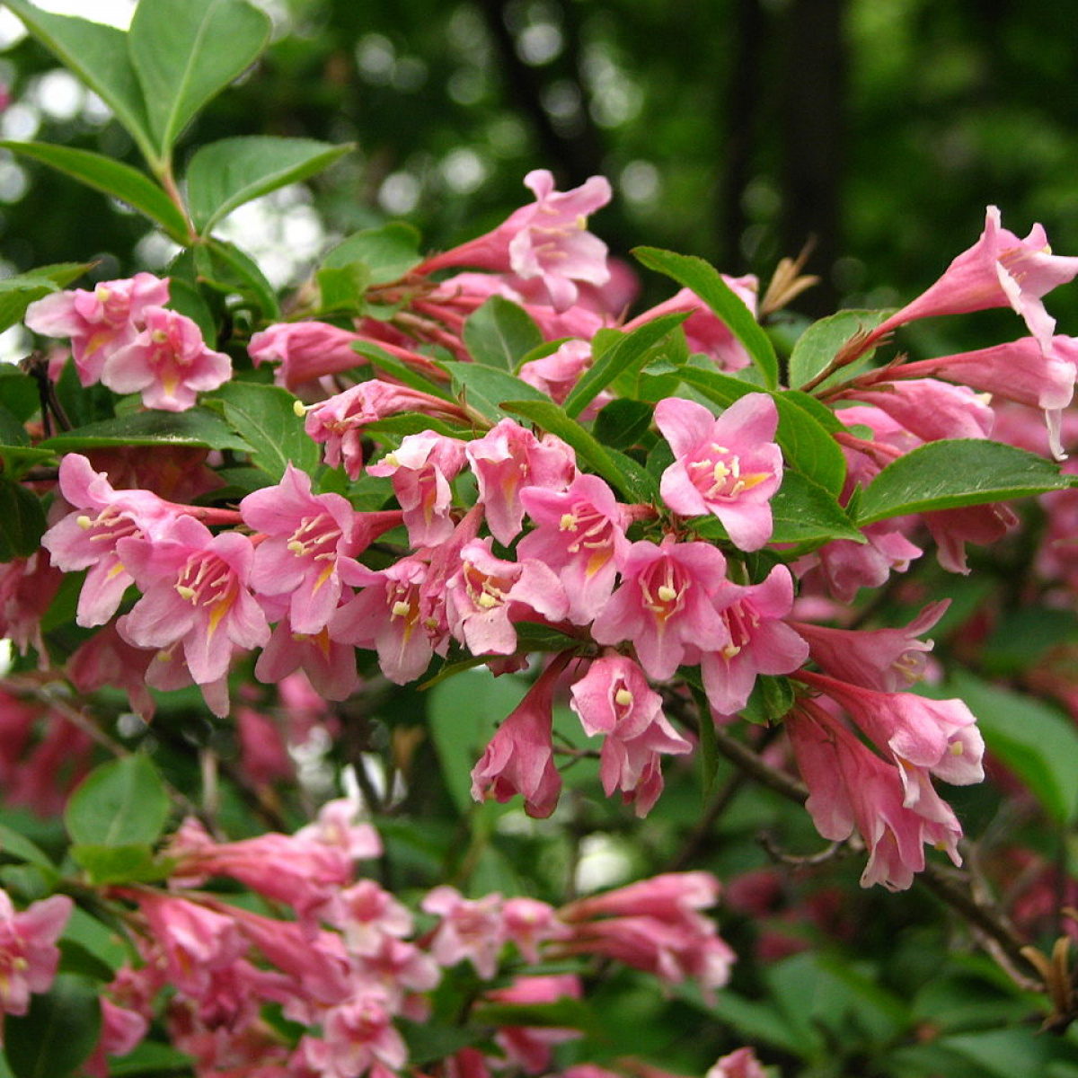 Кустарник высотой и диаметром до 1,5м. Цветет обильно светло-розовыми колокольчатыми цветками, собранными в соцветия. Цветет май-июнь. Повторное цветение август-сентябрь. Солнце, полутень.